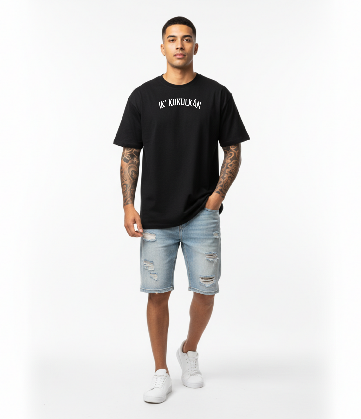 Esta playera oversize está confeccionada en 100% algodón peinado premium, ofreciendo una textura suave y duradera. Con un peso de 320 gramos, garantiza resistencia y calidad superior. Su cuello de 3 cm con cubre costuras aporta mayor comodidad y acabado impecable. El diseño oversize brinda un ajuste relajado y moderno, ideal para cualquier ocasión. Estampado de IK´KUKULKÁN en el frente y por el reverso.